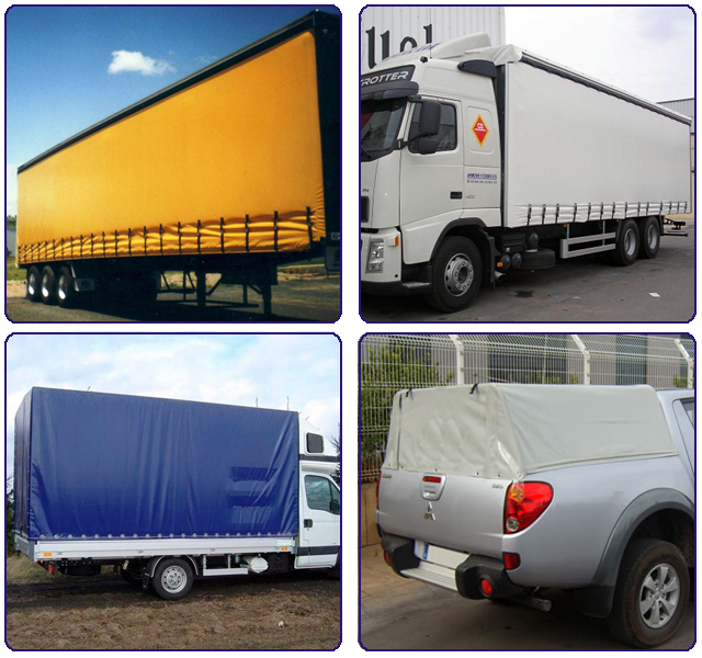 Utilizamos lonas de distintos gramajes, siendo todas ellas ignifugas, todos los tejidos son IMPERMEABLES, recubiertos de PVC., ofreciendo al sector desde lonas ligeras (400 gr./m2), hasta lonas de gran resistencia ( 900 gr./m2), muy aptas en el mercado actual para la demanda de cortinas correderas laterales.