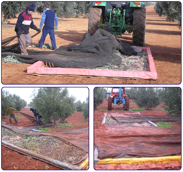 Esta lona, diseñada y probada, ayuda al recolector de la acituna en su labor de transportar la aceituna una vez es vareada del olivo.